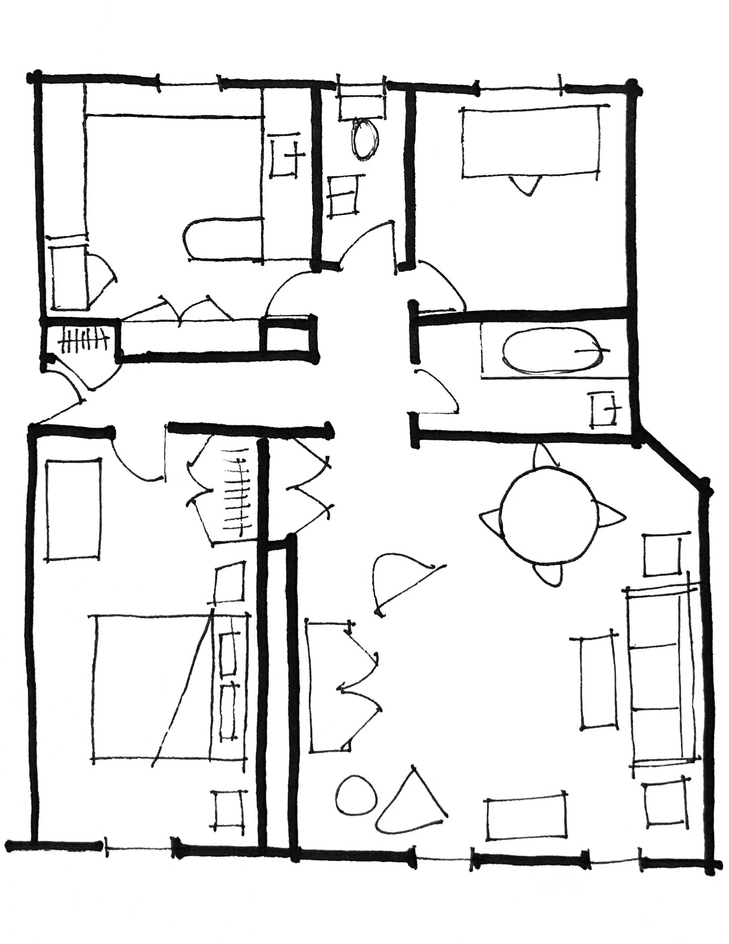 In this journal entry, I’ve sketched from memory the places I’ve lived. Not to capture their plans or finishes with accuracy, but to trace the feeling of them. These are the memories I return to when I’m getting to know a client, when I’m trying to understand the soul of a home. What stays with us, often, are the things we didn’t consciously notice at the time—the atmosphere of life.